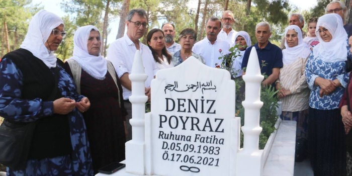 Halkların Demokratik Partisi (HDP) İzmir İl Örgütü binasına 17 Haziran 2021'de gerçekleşen silahlı saldırıda katledilen Deniz Poyraz, katledilişinin 3'üncü yıldönümünde Buca Kaynaklar Mezarlığı'nda bulunan kabri başında anıldı.