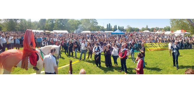 Strasbourg’da açlık grevinde olanların yakınları da festivalde bir konuşma yaparak, açlık grevindeki direnişçilerin selamlarını getirdiklerini, ”Açlık değil, sessizlik öldürür” diye belirttiler. Açlık grevi ve ölüm orucu direnişçileri etrafında kenetlenerek direnişi yükseltme çağrısında bulundular. Bu konuşmalar sırasında sık sık ”Berxwedena Zindanan”, ”Jin jîyan Azadî” sloganları atıldı.