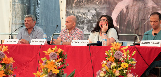 Panelin ilk konuşmacılarından yazar Erdal Emre, Almanya’nın Afrika’daki soykırımına dikkat çekerek Osmanlı’nın 1915 yılına kadar gerçekleşen katliamların birbirleriyle ilişkisine dikkat çekti. 1930’lara gelene kadar Almanya’nın, Osmanlı katliamlarındaki rolüne değinen Emre, 1938’de gerçekleşen Dersim katliamında Almanya’nın rolünün olduğunu belirterek şunları dile getirdi: ”12 bin yıldır halklar boğazlanıyor. Soykırmların temellerini oluşturan nedenler yerinde duruyor. Yeni soykırımların yaşanma olasılığı var. Dersim soykırımı devam ediyor. Kabul edilmeyen soykırım, devam eden soykırımdır.”