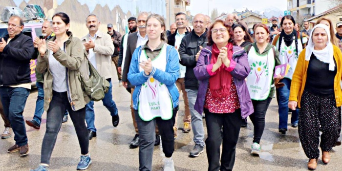 - Uzun zamandan beri galiba ilk defa Dersim’de insanların yüzünü buruk da olsa gülümserken görüyoruz. Pertek’ten Nazimiye’ye, Xozat’tan Ovacık’a gittiği her yere o güzel ve içten gülümsemesini taşıyor Yeşil Sol Parti adayı Ayten Kordu. Öyle görünüyor ki, girdiği hiçbir kahvede, adımladığı hiçbir köy meydanında tek bir eli tutmadan, tek bir omuza dokunmadan geçmiyor Ayten.