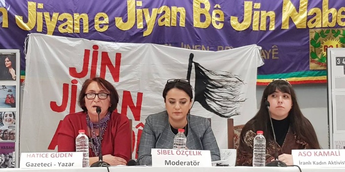 - Londra’da 25 Kasım dolayısıyla düzenlenen ‘İran’da kadın isyanı’ adlı panelde konuşan yazar Hatice Güden, İran’da hareketin devrimci dinamizminin Kürt kadını olduğunu söyledi.