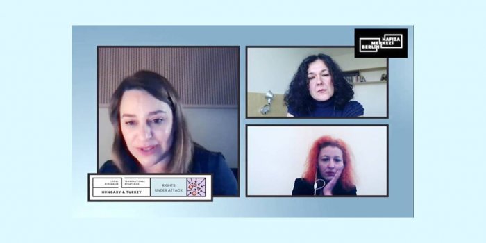 Akademisyen Özgür Sevgi Göral’ın moderatörlüğünde gerçekleşen webinar etkinliğinde Türkiye ile Macaristan’da insan haklarına yönelik son dönemde artan baskı ortamına odaklanıldı. Bu duruma yol açan siyasi değişimler, yerel ve uluslararası düzeyde hukukun üstünlüğüne yönelik saldırılar, sivil toplum örgütlerini hedef alan yasa değişikliği ve diğer baskı araç ve yöntemleri konuşuldu.