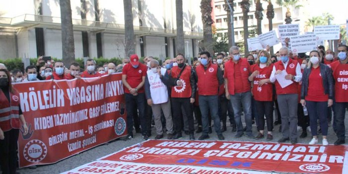 - Torba yasaya karşı birçok kentte açıklama yapan DİSK üyeleri, teklifin geri çekilmesi talebini yineleyerek, “İşçi düşmanı hükümet haklarımızı gasp edecek. Biz meydanlardayız, kıdem tazminatımıza dokundurtmayacağız” dedi.