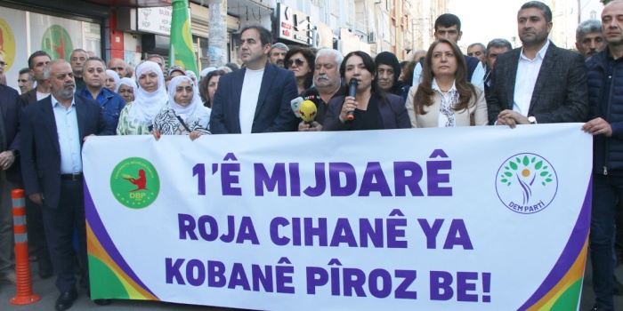 DBP ve DEM Parti Amed İl örgütleri, DBP Amed İl Örgütü binası önünde açıklama yaptı. DBP Amed İl Eşbaşkanı Sultan Yaray, "Toprağı üzerinde Kürt halkını yok etmek isteyenler gidecek. Bırakın Kürtler kendi toprağında özgür yaşasın" diye konuştu.
