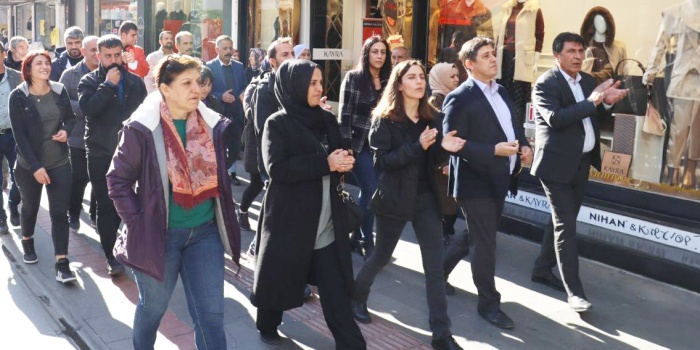 Haberhazırlanırken kitlesel yürüyüş kollarının Gülistan Caddesi’nde birleşerek, kayyum atanan belediyeye yürümesi bekleniyordu.