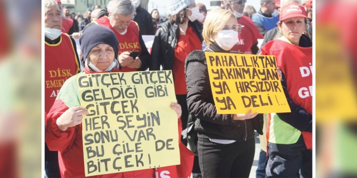 - AKP'nin 21 yıllık iktidarı döneminde işçi sınıfına esnek çalışma, işsizlik, sendikasızlaştırma, grev yasakları, taşeron, mezarda emeklilik ve iş cinayetleri gibi hak gaspları dayatırken, patronlara vergi ve sigorta primi aflarıyla birlikte işten atma ve sömürünün imkanlarını sundu.