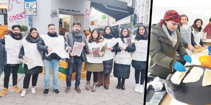 Yaşanan insanlık dramını anlatmak için bilgilendirme standları da açtıklarını söyleyen Nurhak, topladıkları maddi desteği depremzedelere ulaştırdıklarını söyledi. Kentte yaşayan birçok Rojavalının da sınır kapıları kapalı olduğu için yardımlarını Mig-Zentrum üzerinden ulaştırdığını söyleyen Nurhak, “Şimdiye kadar 50 bin Euro toparladık. Yardımı, Emek ve Özgürlük Bloğu bileşenleri arasında yer alan Türkiye ve Rojava’da bulunan Sosyalist Meclisler Federasyonu’na bağlı kriz masalarına gönderdik” diyerek, kollektif bir çalışma ile desteklenen büyük bir dayanışma ruhu olduğunu vurguladı.