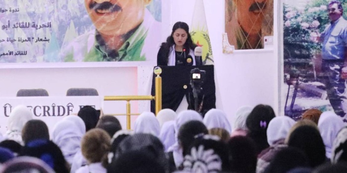 “Ortadoğu’daki sorunların çözülmesine izin vermiyorlar. Ortadoğu ve Kurdistan’daki sorunların çözüm anahtarı Önder Apo’dur. Önder Apo’nun sunduğu çözümler bölge üzerindeki hedeflerinin gerçekleşmesine izin vermiyor” diyen Riham Haco, demokratik ulus ve kadın özgürlüğü paradigması, halklara ve uluslara duyulan sevgi olduğunu söyledi.