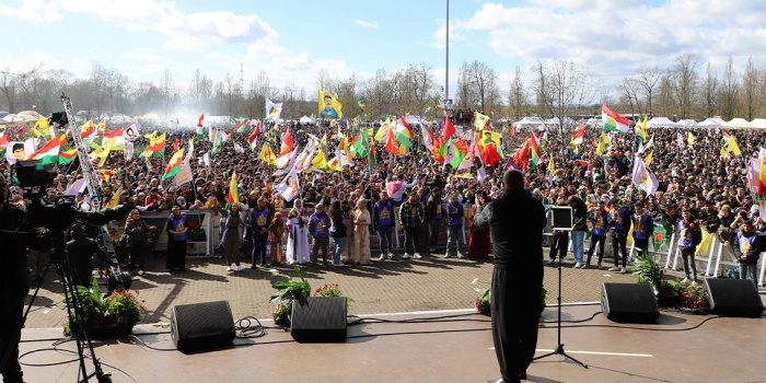 Almanya’da Kurdistanlıların çatı örgütü KON-MED’e bağlı 5 federasyon tarafından organize edilen 51. Önderlik Newroz’una on binlerce kişi katıldı. Kurdistan’ın dört parçasından Kürtler ve dostlarının katıldığı Newroz, aynı zamanda depremde yaşamını yitirenlere adandı. Alanının dolup taştığı Newroz’dan elde edilecek gelir de deprem bölgelerine aktarılacak.