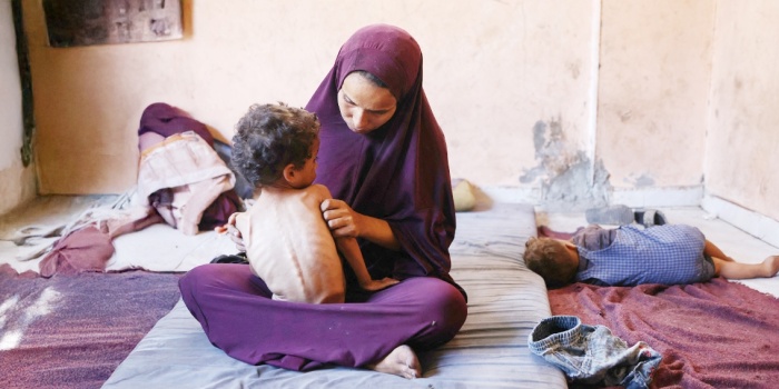 Yedi aylık ve 4 kilodan biraz fazla ağırlıkta olan çocuk, tedavi için ikinci kez hastaneye yatırıldı. Yüzü çökmüş, uzuvları sarkık deriyle kaplı kemiklerden ibaret ve kaburgaları göğsünden acı verici bir şekilde çıkıntı yapıyor. The Guardian’a konuşan ve başı açlıktan sürekli dönen büyükannesi Faiza Abdul Rahman, “Şu anda en büyük korkum, torunumu yetersiz beslenme nedeniyle kaybetmek. Kardeşleri de şiddetli açlık çekiyor. Bazı günler, tek bir lokma bile yemeden yatıyorlar” dedi.