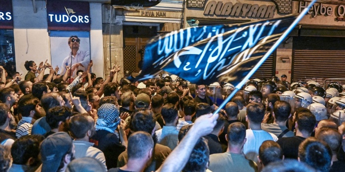 Beyoğlu Kaymakamlığı dün bir açıklama yaptı. Bölgede 24 saat süreyle toplantı ve gösteri yürüyüşü, basın açıklaması, bildiri dağıtma ve oturma eylemi gibi tüm etkinliklerin yasaklandığını duyurdu. Yasak kararına rağmen bir grup Türk dinci-ırkçı grup, Taksim Meydanı’ndaki Ağa Camii önünde toplandı. Ellerinde dövizler taşıyan grup, “Peygambere hakaret cezasız kalamaz” sloganı attı. Öte yandan yasağa rağmen toplanan gruba, polisin müdahale etmemesi dikkat çekti. Haber hazırlanırken polis ve dinci şovu devam ediyordu.