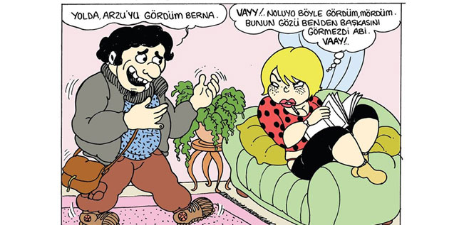 Sergiye gelenlerin çoğunluğu Alman. Şimdi Türkiye’den çok ünlü yazarlar geldiği için Türkçe bilenlerin sayısı biraz fazla yoksa çoğunluğu Alman. Şöyle yapıyoruz, mesela bir antropolog, bir bilim kadını Anna Jonis Ester üç karikatürden yola çıkarak Türkiye’nin psikolojik ruh halini anlatacak. İki ay sürüyor sergi, ben Türkiye’deki karikatür tarihini bir video sunumuyla sunacağım. Jule Sievert, Türkiye’de karikatürde Yahudi imgesi üzerini yaptığı masterını anlatacak. Yani bunların hepsi Almanca oluyor. İlgi duyan Alman, Türkiyeli ya da Almanya dışındaki ziyaretçiler de bunu takip edebiliyor. Sergideki işler iki dilli. Hem Türkçe hem Almanca karikatürler var ama Alman ziyaretçiye sadece karikatürleri göstermek değil, bir az önce bahsettiğim bağlamı da anlatmak istiyoruz. Mesela “Bayan Yanı” diye, sadece kadınların yazdığı, Türkiye’de en çok satılan karikatür dergilerinden biri var. Kadınlar erkek dünyası olan mizah sanatında giderek daha çok yer alıyorlar, değerler cinselik konusu olduğu gibi değişiyor. Tüm bunlar Türkiye toplumuna tutulan bir ayna. Bunların bilinmesini istiyoruz aynı zamanda. Yani sergi yapsak, sergideki işleri gösterirdik, bir de bunun yanında bilgilendirme metinleri koyardık. Ama böyle klasik bir sergi yapmak istemedik. Onun için çok yoğun bir yan etkinliğimiz var, bir nevi festival gibi.