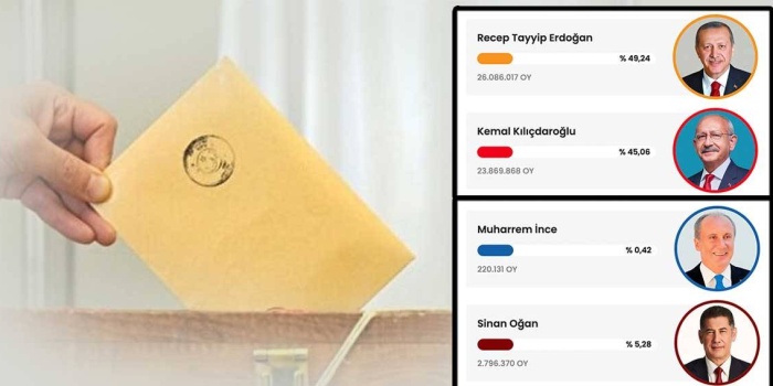 YSK Başkanı Ahmet Yener, dün 09.45 itibarıyla Erdoğan’ın 49,40, Kemal Kılıçdaroğlu’nunsa yüzde 44,96 oy oranına sahip olduğunu açıkladı. Yener, yurt içinde 27, yurt dışındaysa bin 529 sandığın henüz açılmadığını bildirdi. Yani yurt içinde sandıkların yüzde 99’u, yurt dışındaysa yüzde 84’ü açılmış oldu.