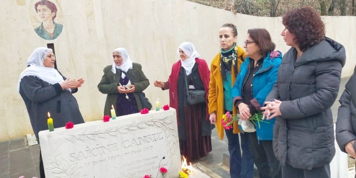 - Kadınlar, Türk polisi ve jandarmasının ablukasına rağmen Paris’te katledilen Sakine Cansız, Fidan Doğan ve Leyla Şaylemez’i mezarı başında andı. “Burası itaat edenlerin değil, yaşamı mücadeleye çevirenlerin yeri” mesajını veren kadınlar, her gün ve her dakika ayakta durmaya devam edeceklerini belirtti.