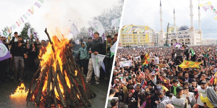 Depremlerde hayatını kaybedenlere adanan ve “Her der Newroz, her dem azadî” şiarıyla Mêrdîn’in Qoser (Kızıltepe) ilçesinin Otogar Meydanı’na, sabah saatlerinden etkili olan sağanak yağışa rağmen adeta akın yaşandı. Fırtına riskine karşı alana vinçlerle asılan flamalar indirilmesine rağmen alana akın eden binler, flamaları yeniden havaya kaldırdı. Kentin birçok noktasından alana ulaşmaya çalışan yurttaşlar, HDP, DBP ve Yeşil Sol Parti flamalarını ellerine alarak alandaki yerlerine aldı. Yağışın durması ve güneşin açmasıyla birlikte alan hınca hınç doldu. On binlere ulaşan kitle, sloganlar atmaya devam ederken, Öcalan posterlerinin açılmasıyla beraber coşku da doruğa çıktı. Saygı duruşunun ardından Tertip Komitesi sahneye çağrılarak, devamında Newroz ateşi yakıldı.