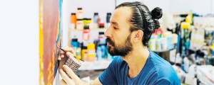 - Doğuştan fiziksel engelli, iki kolu olmayan Dûa El Bestatî, sağ ayağı ile kavradığı fırçasıyla tuvalde harikalar yaratıyor.
