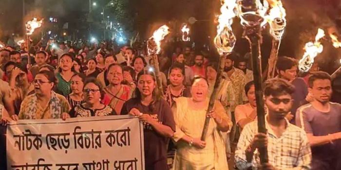 Çarşamba gecesi düzenlenen geniş çaplı protesto yürüyüşü, 31 yaşındaki stajyer doktorun RG Kar Tıp Fakültesi'nde tecavüze uğrayarak katledilmesiyle başlayan ve bir haftadır devam eden eylemlerin sonuncusu oldu.