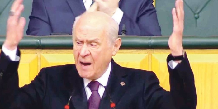 - Depremden beri evine kapanan, Meclis’teki siyasi partiler grup toplantılarını iptal etmesine rağmen dün yapılan partisinin Grup Toplantısı'nda boy gösteren iktidar ortağı MHP Genel Başkanı Devlet Bahçeli, küfür ve tehditler savurup tekrar evine kapandı.