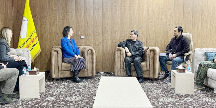 Ann Snow başkanlığındaki heyet, daha sonra Kuzey ve Doğu Suriye Demokratik Özerk Yönetimi Dış İlişkiler Dairesi Eşbaşkanları Îlham Ehmed ve Fener El Kiêt tarafından ağırlandı. Görüşmede, Suriye'deki sorunların ve çatışmaların çözümü için tüm taraflar arasında diyalog ve uzlaşının güçlendirilmesi konusu tartışıldı. Toplantıda, özellikle uzun yıllardır süren zorlukların ardından Suriye'nin geleceğini belirlemede Kuzey ve Doğu Suriye Bölgesi'nin üstlendiği rolün önemi vurgulandı. Taraflar, tüm Suriye halkının ve Şam'daki geçiş yönetiminin Kuzey ve Doğu Suriye'de edinilen deneyim ve derslerden yararlanmasının ve gerçek diyaloglar başlatmasının önemini vurguladı. Îlham Ehmed, Suriye'nin geleceğinde gerçek bir işbirliğinin kurulmasında Suriyeli hiçbir bileşenin dışlanmaması gerektiğini vurguladı.