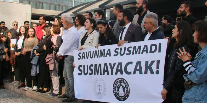 - İzmir Barosu Genel Kurulu’nda kimyasal silah kullanımının araştırılması, hasta tutukluların serbest bırakılması talebiyle konuşma yapan ve ‘Jin jiyan azadî’ sloganı atan ÖHD'li avukat Aryen Turan, önce 'Mustafa Kemal'in askerleriyiz' sloganıyla karşılanıp ırkçı saldırıya uğradı. Hemen ardından yargı ve polis devreye girdi. Soruşturma açıldı, gözaltına alındı; adli kontrol şartı ve yurt dışı yasağıyla tutuksuz yargılanması sürecek.