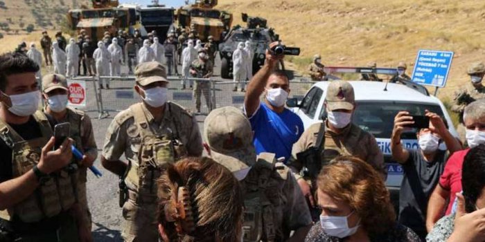 Ailelerin yaşadığı Kelekê (Yücebağ) Mahallesi ile bağlı Dêr ve Karasu mezralarına gitmek üzere dün sabah Amed’den hareket eden heyetin gelişi öncesinde bölgede sıkı önlemler alındı. Mahallenin girişi bariyerler ve zırhlı araçlarla geçişlere kapatıldı. Görevlendirilen bazı askerlerin üzerine koruyucu elbiseler giydikleri görüldü. Yol üzerinde iki ayrı noktada oluşturulan kontrol noktalarında araçları durdurulan heyet üyeleri ise kimlik kontrolünden geçirildi. Buna rağmen mahallenin girişine ulaşan heyetin geçişine “Mahallenin karantinaya alındığı” gerekçesiyle izin verilmedi.