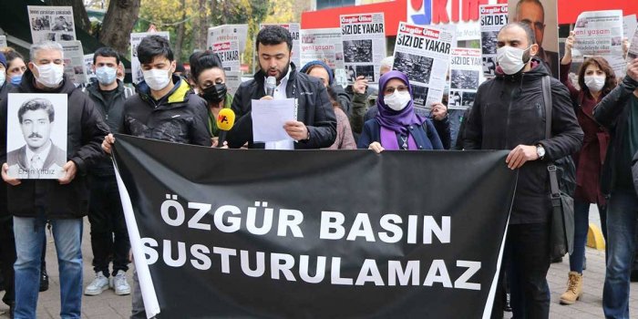 Şehit Ersin Yıldız’ın anıldığın anmaya, Halkların Demokratik Partisi (HDP) Milletvekili Hüda Kaya, MYK Üyesi Ferhat Encü, İnsan Hakları Derneği (İHD) Eşbaşkanı Eren Keskin, HDP İstanbul İl Eşbaşkanı Elif Bulut ve çok sayıda gazeteci katıldı. “Özgür Basın Susturulamaz” pankartının açıldığı açıklamada, “Bu ateş sizi de yakar” dövizleri taşındı. Basın açıklamasının okuyan Yeni Yaşam Gazetesi Genel Yayın yönetmeni Mehmet Ferhat Çelik, 26 yıl önce de burada olduklarını belirterek, şunları söyledi: ”O bembeyaz bir martıya benzeyen binamızın yıkıntılarının önünde, öfke ve acıyla doluyduk. Belki de sadece binanın sağlamlığından ötürü birçok arkadaşımız katliam girişiminden yaralı kurtulmuştu ama Ersin Yıldız kayıp gitmişti ellerimizden. 3 Aralık 1994’ten söz ediyoruz. Tansu Çiller’in gizli ibareli emriyle ‘bertaraf edilmesi’ istenen Özgür Ülke’nin Ankara ve İstanbul’daki bütün binalarının aynı anda bombalandığı o günden söz ediyoruz. ‘Gizli’ filan da değildi aslında hiçbir şey. Bize neden saldırdıklarını, o bombaların neden patladığını biliyorduk ve o yüzden hepimizin dilinde bir tek söz vardı. Bu gazete yarın çıkacak! Çıktı da! 3 Aralık’ı hiç unutmadık ama o binanın yıkıntılarından korku değil, azim ve cesaret ürettik. Biz buradayız. Nerede gerçeğin önüne çekilmiş bir perde varsa onu yırtmak bizim işimizdi ve işimizi hep yaptık. Bedeli de her neyse ödedik, ödemeye devam ediyoruz. Eğilmeyeceğiz, bükülmeyeceğiz. Gerçeği yazmaktan geri durmayacağız.” Foto: MA/İSTANBUL