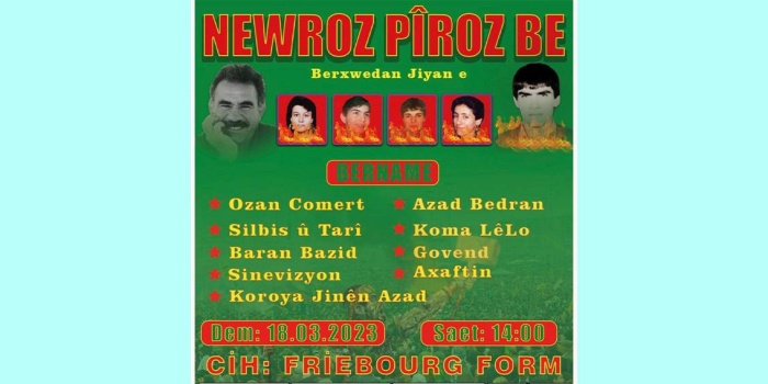 İsviçre Newroz tertip komitesi yaptığı açıklamada bu yıl elde edilecek bütün gelirlerin depremde zarar gören halkın yaralarını sarmak için kullanacağını ifade ederek Newroz’a katılım çağrısı yaptı. Friebourg Form alanında 18 Mart’ta yapılacak olan kutlamaya Ozan Cömert, Silbis û Tari, Azad Bedran, Baran Bazid, Koma Lêlo, Koroya Jinen Azad katılacak. Lozan, Basel ve Zürih’de ise 22-23 Mart’ta İsviçreli siyasetçilerinin katılacağı Newroz resepsiyonları yapılacak.