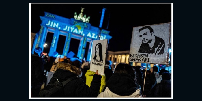 - Berlin Büyükşehir Belediyesi, İran'da süren kadın direnişine tarihi Brandenburg kapısını "Jin jiyan azadî" ışıklandırması yaparak destek verdi.