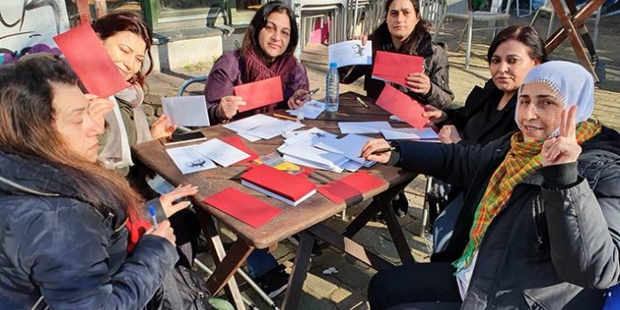Saarbrücken’deki Şirin Elemhuli Kadın Meclisi, PKK yasağına karşı mücadele kapsamında yürütülen imza kampanyası için onlarca imza topladı, broşür dağıttı.