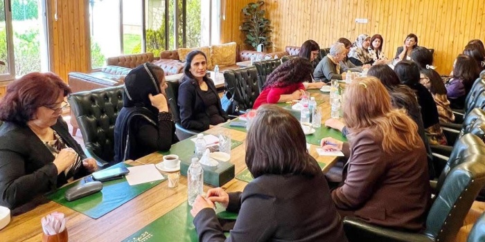Rojavalı kadınlardan oluşan bir heyet, Ulusal Kadın Kongresi ve buna bağlı olarak Ulusal Kürt Kadın Konferanası’nı görüşmek üzere Başûrê Kurdistan’da. Kürt Kadın Konferansı Hazırlık Komitesi Üyesi Stêrk Qasim, Suriye Demokratik Birlik Partisi Üyesi Sîham Emûke, Kürdistan Gelecek Hareketi Başkanı Narîn Metîni ve Demokratik Birlik Partisi Eşbaşkanı Perwîn Yusif’ın yer aldığı Rojava heyeti, çok sayıda kadın örgütü ve kurumu ziyaret etti. Ulusal Kürt Kadın Konferansı Hazırlık Komitesi Üyesi Stêrk Qasim ve Suriye Demokratik Birlik Partisi Üyesi Sîham Emûke, heyetin ziyareti ve görüşmelerin amacı hakkında Rojnews’e konuştu.