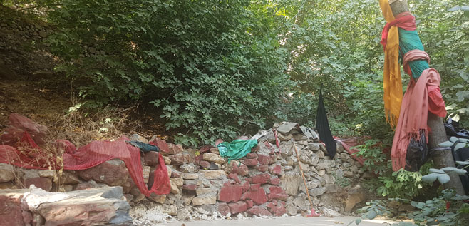 Sağlı, sollu yıkılmış evlerin temellerinin arasından geçerek vadinin dibindeki dereye vardık. Berrak bir su akıyordu. Soğuk suya ayaklarımızı koyup birer sigara içtikten sonra köprünün üzerinden geçerek vadinin karşı tarafına geçtik. Karşı tarafta evlerin yıkıntıları arasında bir süre ilerledikten sonra bir patikaya girdik. İncir, nar ağaçları patikanın üstünü kapatmıştı. Seyid Serhat önde biz arkasında yürüyoruz. Seyid olgunlaşmış incirlerden toplayıp, toplayıp bize veriyor. “Hawar’ın kutsal incirleri bunlar. Geliyê Hawar’a gelip kutsal incirlerinden yemeden gitmek olmaz’’ diyor.
