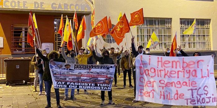 Bordeaux kentinde “Tecride, Faşizme, İşgale Son – Bi Hev Re Serhildan” şiarıyla düzenlenen eylem Bordeaux Belediyesi önünde başladı. “Stop à la trahison du KDP” (KDP’nin İhanetini Durdurun) pankartının açıldığı eylemde gençler, KDP ve Türk devletini protesto eden sloganlar attı.