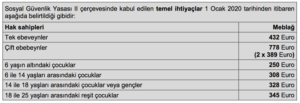 Kinderzuschlag talep edebilmek için daha önce geçerli olan maksimum gelir sınırı 1 Ocak 2020'den itibaren değişti; Yani, geliriniz, kira yardımı vb çocuk parası ödemeleri, İkinci Alman Sosyal Güvenlik Yasasının (SGB II) hak talebinin 100 Euro altında olması gerekir.