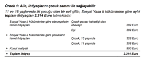 Böylece ailenin ayda ellerine 2.064 Euro geçiyor (1.407 Euro + 408 Euro çocuk parası ve 249 Euro barınma yardımı).