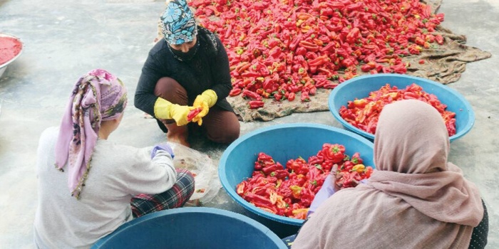 Kışlık gıda hazırlayan kadınlar