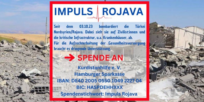 Impuls Rojava kampanyasına yardımlar aşağıdaki hesap numarası üzerinden yapılabilir: