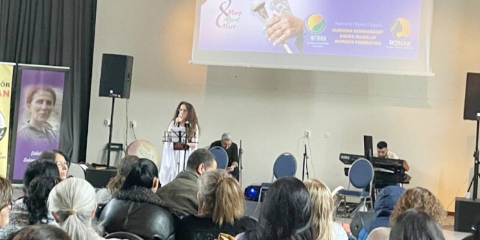 İsveç’in başkenti Stockholm’da Amara Kadın Meclisi’nin organizasyonu ile gerçekleşen bu yılki 8 Mart Dünya Emekçi Kadınlar Günü coşkulu bir kutlama ile karşılandı. “Jin Jiyan Azadî ile Kadın Devrimine Yürüyoruz” şiarı gerçekleştirilen gece, Kurdistan Özgürlük Şehitleri anısına saygı duruşuyla başladı. Kadın gecesinin açılış konuşmasını Sara Çatı Örgütü adına Ayşe Didar yaptı. Didar, “8 Mart'ı savaşın ve kadın katliamlarının gölgesinde ve bu gölgeye karşı güneş gibi yükselen kadın mücadelesiyle karşılıyoruz. Kadınları ve halkları karanlık bir kış gibi kuşatıp boğmaya çalışan erkek egemen zihniyet ve sisteme karşı kadınlar, baharın müjdecisi olarak umut veriyor ve hayata kendi rengini veriyor” dedi.