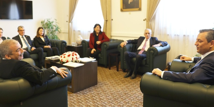 İmralı F Tipi Yüksek Güvenlikli Kapalı Cezaevi'nde tecrit altında rehin tutulan Kürt Halk Önderi Abdullah Öcalan ile 28 Aralık'ta görüşen DEM Parti Milletvekilleri Sırrı Süreyya Önder ve Pervin Buldan ile yerine kayyum atanan Mêrdîn Büyükşehir Belediyesi Eşbaşkanı Ahmet Türk, dün saat 10.30'da Meclis'te CHP Genel Başkanı Özgür Özel ile görüştü. Özel'in yanı sıra CHP Grup Başkanvekili Gökhan Günaydın, CHP Genel Sekreteri Selin Sayek Böke ve CHP Genel Başkan Yardımcısı Gökçe Gökçen heyeti karşıladı. 1 saat 35 dakika süren görüşmenin ardından Özgür Özel ve Sırrı Süreyya Önder açıklama yaptı.