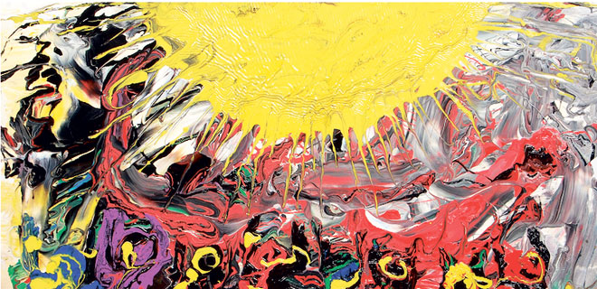 Hepimizin aşina olduğu Kürt motifleri sırlı bir şekilde tekrar önümüze çıkıyor. Ressamın eserinde kendimizi buluyoruz. Kendi kargaşamızı, endişelerimizi ve köklerimizi görüyoruz. Spatula darbelerinin ardında bıraktığı çizgilerde bize bizi anlatan motiflere rastlıyor, bir nevi öz arayışımıza çıkıyoruz. Bu resimde önemli bulduğum bir diğer unsur, kullanılan renkler ve kontrastlar. Oldukça canlı renkler gözlerimize işliyor ve bizleri farklı bir dünyayla tanıştırıyor. Gerçek hayatta karşılaşmadığımız kadar parlak renkler kullanılmış. Resmi domine eden sıcak renkler arasında bazı soğuk tonlara rastlıyoruz ve bu renkler gözümüzü oraya odaklamamıza neden oluyor.