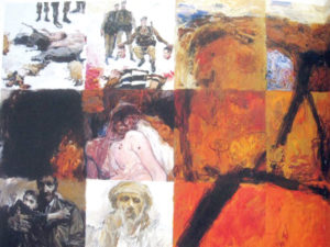Bizden kilometrelerce ve yıllarca uzak olan patlama tekrar oluyor. Şiddeti hem evimizde hem sokaklarda görüyoruz. Askerlerden kaçıyoruz ya da en azından bu manzara derimizin altına işliyor. Barut ve kanın kokusu birbirine karışıyor. Yasaklı bir hikayenin içinde kayboluyoruz. 50’li yaşlarında kanserden hayatını kaybeden ressamın ve onunkine benzer acılar yaşamış herkesin acıları beliriyor gözlerimizde.