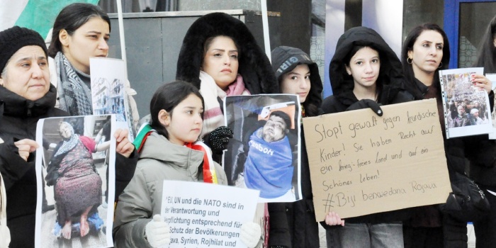 Halep’in Şêxmeqsûd ve Eşrefiyê mahallelerine yönelik saldırılar Avrupa’da düzenlenen eylemlerle protesto edilmeye devam ediyor. Almanya’nın Minden kentinde gerçekleştirilen, kadın ve çocukların çoğunlukta olduğu eylemde, çetelerin saldırılarına karşı büyük bir öfke hakimdi.