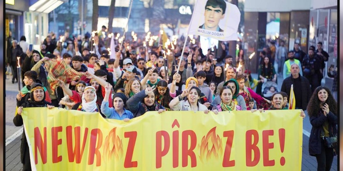 Almanya’nın Darmstadt kentinde Kürtlerin gelenekselleşen meşaleli yürüyüşünde kutlamalara katılanlar “Bijî Serok Apo”, “Bijî Newroz” sloganları ile yürüdü.