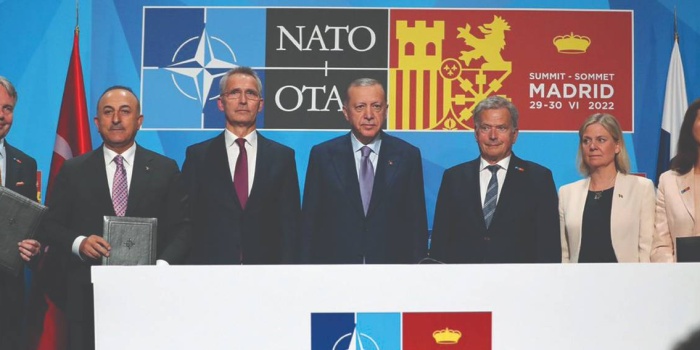 Türkiye, İsveç ve Finlandiya'nın NATO üyeliğine vetosunu kaldırdı. İspanya'nın başkenti Madrid'de Salı günü Türk Cumhurbaşkanı Recep Tayyip Erdoğan, Finlandiya Cumhurbaşkanı Sauli Niinistö, İsveç Başbakanı Magdalena Andersson ve NATO Genel Sekreteri Jens Stoltenberg'le gerçekleştirilen dörtlü görüşmenin ardından Ortak Bildiri imzalandı. Memoranduma Türk Dışişleri Bakanı Mevlüt Çavuşoğlu, Finlandiya Dışişleri Bakanı Pekka Haavisto, İsveç Dışişleri Bakanı Anne Linde imza attı.