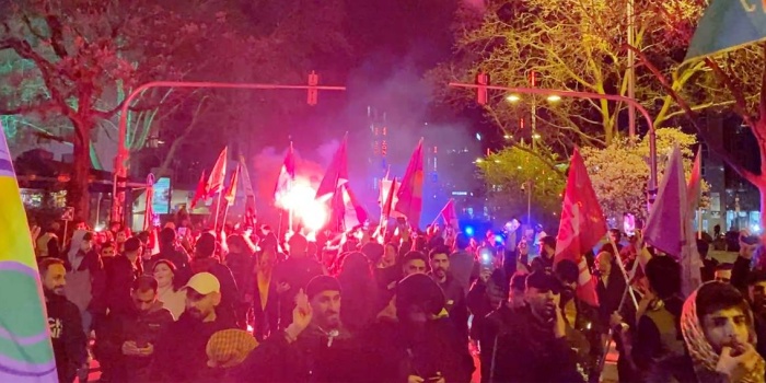 Hamburg’da Hachmannplatz’tan Gansemarkt’a kadar yürüyen Kürt ve enternasyonalist gençler, “Hamburg’dan Rojava’ya faşizme karşı” ve “Rabe” (Ayağa kalk) pankartı ile kitlesel bir yürüyüş düzenledi. Çerxa Şoreşê marşını seslendiren gençler, “Kurdistan faşizme mezar olacak”, “Faschist Türkei” sloganları attı.