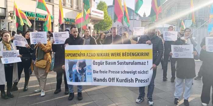 Frankfurt Hauptbahnhof önünde FCDK-KAWA ve TJK-E Hessen’in organizesiyle bir araya gelen Kurdistanlılar Özgür Basın’a saldırıları kınadı. Eylemde FCDK KAWA’nın hazırladığı basın bildirisi okundu, Eşbaşkanı Mehmet Çopan, “Sesimizi kısamayacaklar, asla böyle bir şeyi kabul etmeyeceğiz” vurgusunda bulundu.