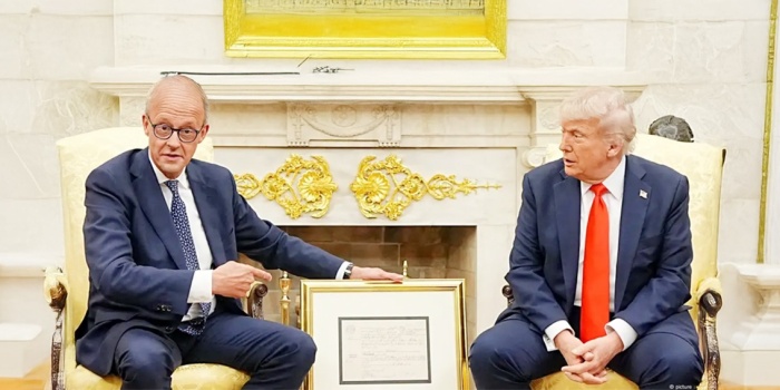 Merz toplantının başında, Trump'ın Alman kökenli dedesi Friedrich Trump'ın Almanya'daki doğum belgesinin çerçevelenmiş bir kopyasını hediye etti. Trump, belgeyi Oval Ofis'e astıracağını söyledi.