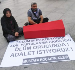Cezaevinde yaşanan duruma itiraz ettiklerini dile getiren baba Koçak, cezaevi yönetiminin ve savcının sorumluluktan kaçındığını ifade etti. Oğlunun yaşamak istediği ve bunun mücadelesini verdiğini aktaran Koçak, şunları ekledi: “Sadece bir itirafçının lafıyla Mustafa ölüme terk ediliyor. Biz de cezaevi önünde bekleyerek onun yanında olduğumuzu hissetmesine yardımcı oluyoruz. Biz kimseden sadaka da istemiyoruz. Eğer adalet varsa tekrar yargılansın, tekrar tarafsız bir adalet istiyoruz. Benim oğlumun tek bir talebi var ve o da yeniden yargılanmak ama bunu anlayan yok.”