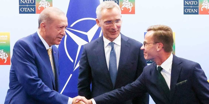 NATO’ya üye ülkelerin devlet ve hükümet başkanlarının katılımıyla gerçekleştirilen Vilnius’taki zirvede İsveç’in ittifaka katılımı konusunda müzakereler yürütüldü. Kürt Özgürlük Hareketine karşı NATO ittifakını tamamen yanına almaya çalışan faşist şef Recep Tayyip Erdoğan, pazarlıklar sonucunda İsveç’in NATO üyeliğine muhalefetini kaldırdı.
