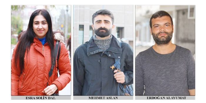 - Tutuklanan gazetecilerden Esra Solin Dal, "Neden gazeteci olduğumuz ve haber yaptığımız soruldu. Haber yazmaya ve hakikati haykırmaya devam edeceğiz" dedi.
