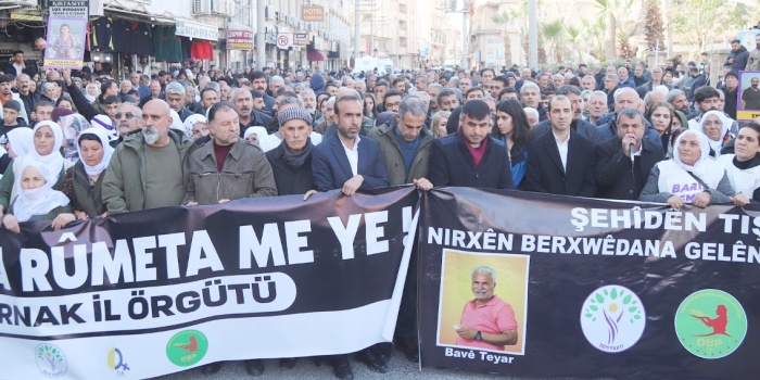 - Kuzey ve Doğu Suriye’ye dönük saldırılarına karşı Nisêbîn’de gerçekleştirilen yürüyüşte konuşan DBP Eşbaşkanı Keskin Bayındır, “Yüzyıllık politikalara karşı bugün İmralı’da ortaya çıkan umuda Kürt halkı sahip çıkacak” dedi.